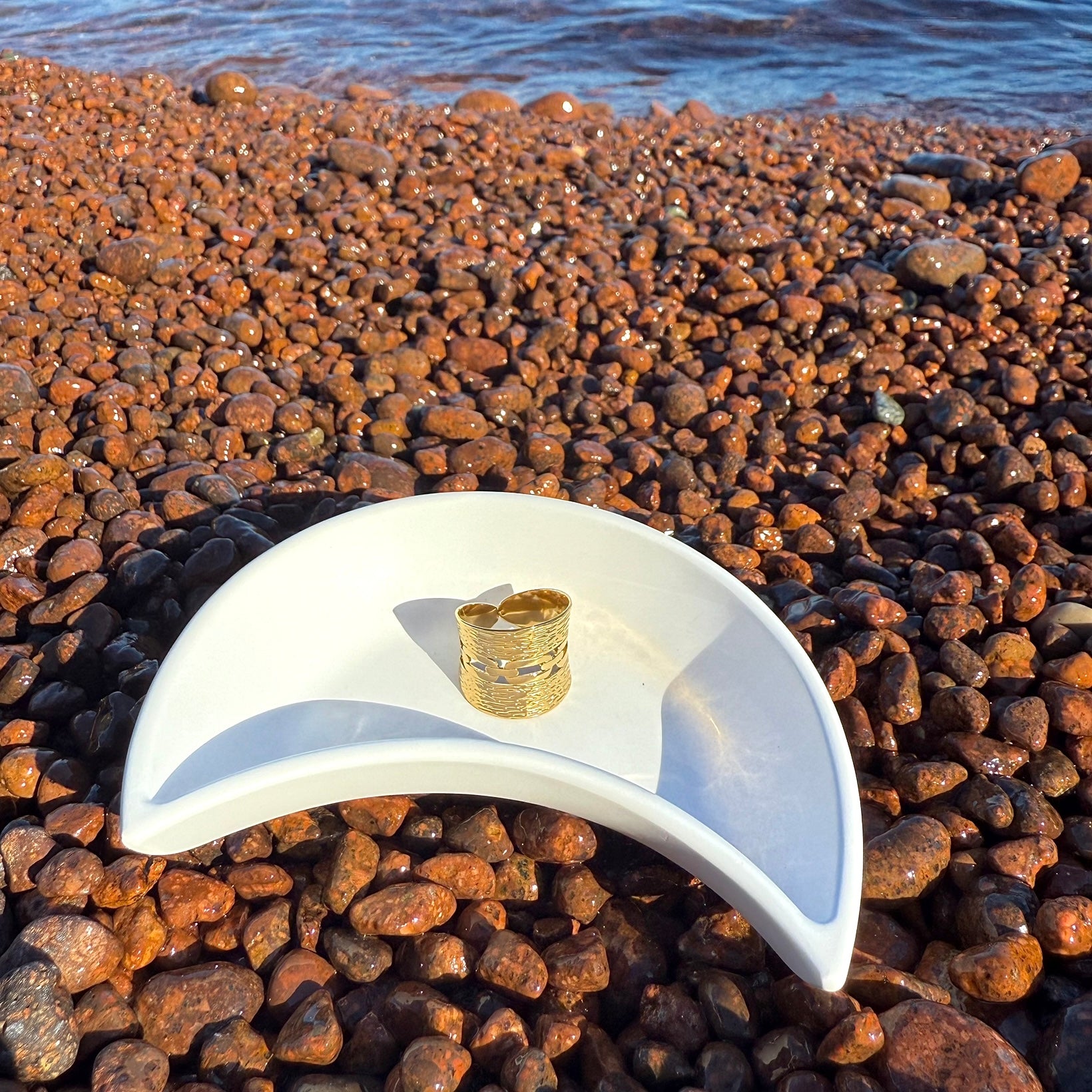 Large et confortable, Orane habille instantanément les doigts et apporte une touche sophistiquée à toutes les tenues. Un bijou au style affirmé, parfait pour un look chic, solaire et tendance.